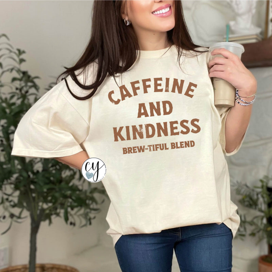 Caffeine and Kindness T-Shirt | Coffee Lover Tee | Positive Quote Shirt | Minimalist Graphic Tee | Millennial Mom Life