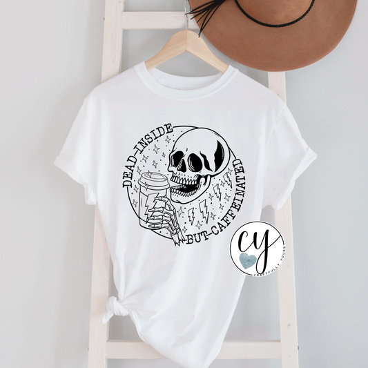 Dead Inside But Caffeinated T-Shirt | Sarcastic Coffee Tee | Funny Mom Shirt | Goth Mom Aesthetic | Tired Parent Shirt