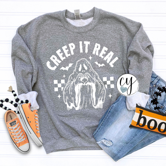 Spooky Season Vibe Check: Creep It Real Ghost Heart Hands T-Shirt | Halloween Comfort Colors Shirt | Cute Spooky Ghost T-Shirt