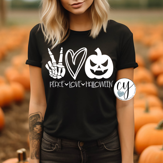Peace Love Halloween T-Shirt | Retro Halloween Tee | Fall Vibes Shirt | Spooky Season Gift for Her | 70s Vibe